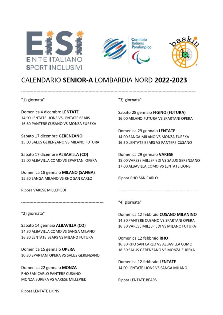 Ha preso il via domenica 4 dicembre il Campionato Lombardia Nord con la vittoria delle Pantere su Eureka Monza. Ecco il calendario delle prime 4 giornate!
