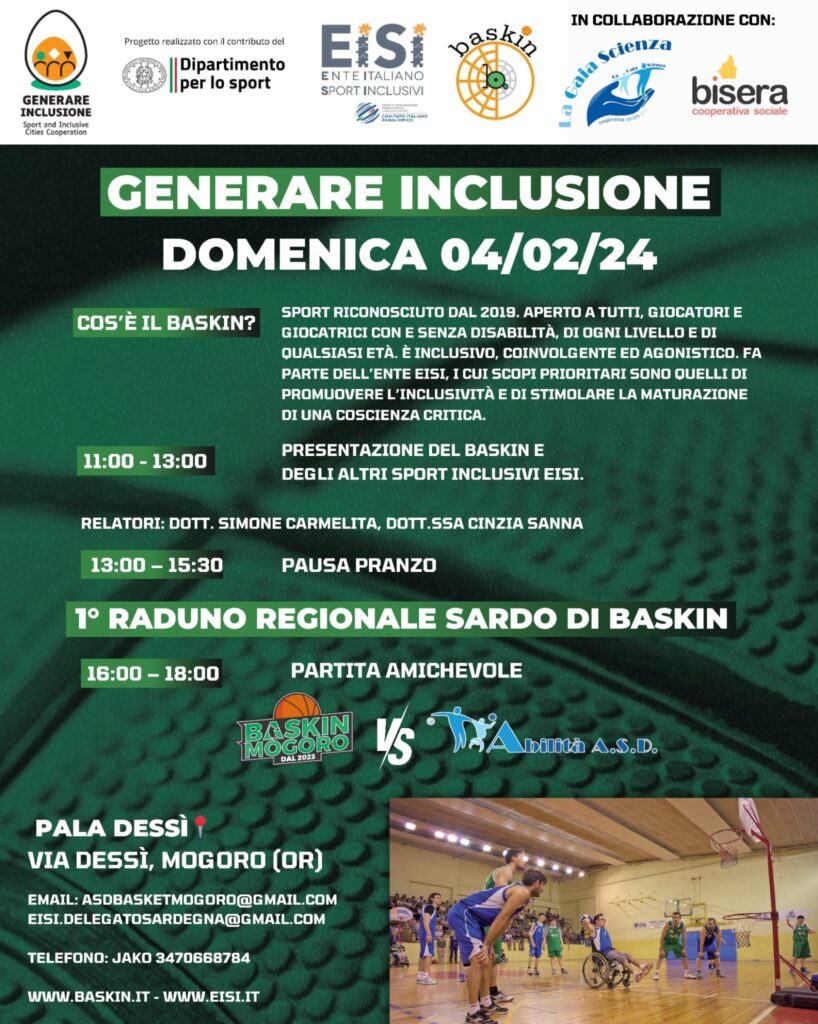 Un grazie enorme all’EISI, a Giacomo Jako Orrù-Melis e Gianluca Mura i nuovi aiuto allenatori Baskin di Mogoro, alla cooperativa sociale Bisera e alla cooperativa La Gaia Scienza di Sassari. Per chi volesse conoscere il Baskin sia a livello teorico che pratico e gli altri sport inclusivi vi aspettiamo domenica 4 febbraio 2024 a Mogoro.