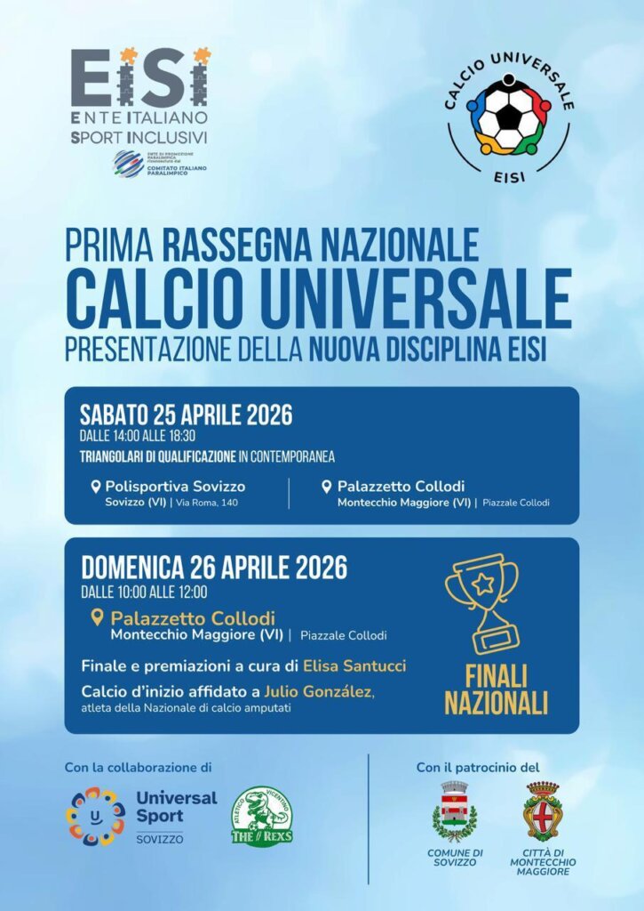Si terrà nei giorni 25 e 26 aprile 2026, tra Sovizzo e Montecchio Maggiore (Vicenza), la Prima Rassegna Nazionale di Calcio Universale EISI, un evento che rappresenta un momento storico per la promozione dello sport inclusivo in Italia.
